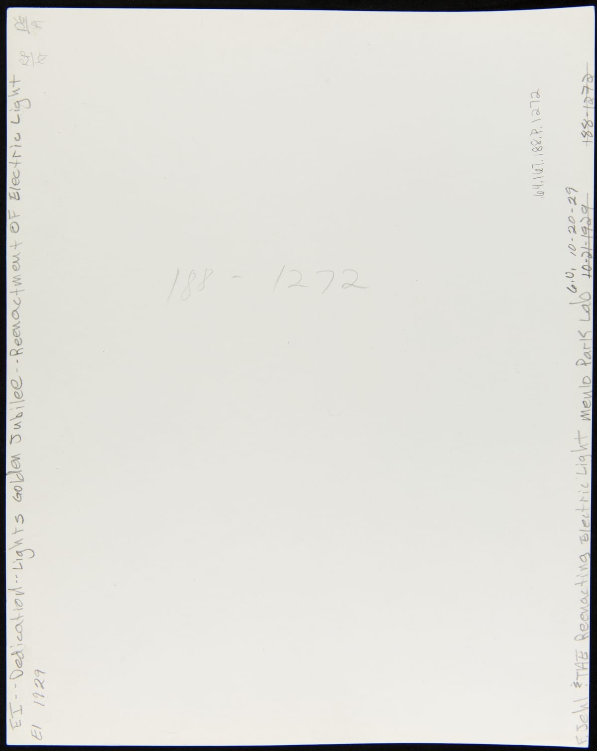 Francis Jehl and Thomas Edison Re-enact the Lighting of the First Incandescent Electric Light at Light's Golden Jubilee, October, 1929