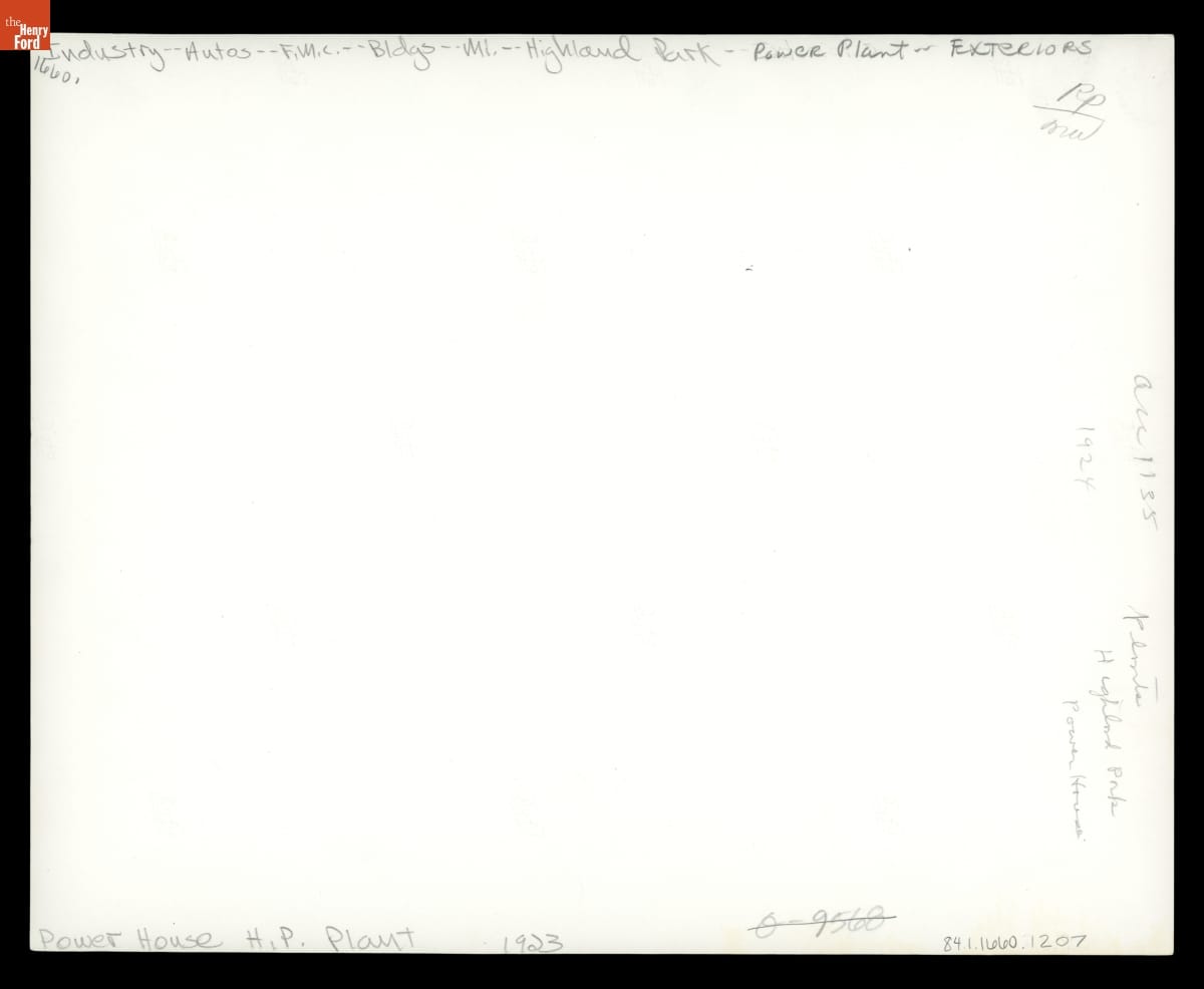 Powerhouse at the Ford Motor Company Highland Park Plant, October 1923