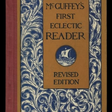 Growing up in the Ohio wilderness, William Holmes McGuffey walked many miles to be tutored. McGuffey taught school to fund his college education, and later became a college professor and president. A well-respected educator, McGuffey was asked to publish a series of graded textbooks. McGuffey's Eclectic Readers were used in schools nationwide during the nineteenth and early twentieth centuries.