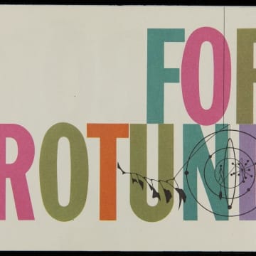 As part of its fiftieth anniversary celebration in 1953, Ford Motor Company refurbished the Rotunda--an exhibit area and hospitality center for Ford's Rouge factory tours. The company commissioned artists to design and install various design elements, including this mobile by sculptor Malcolm Moran, which symbolized progressive research and engineering. The completed mobile hung inside the entrance of the Rotunda.