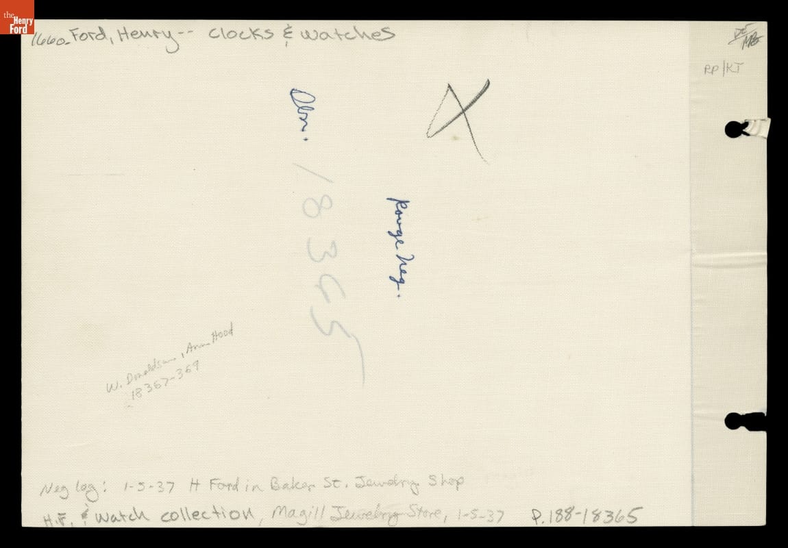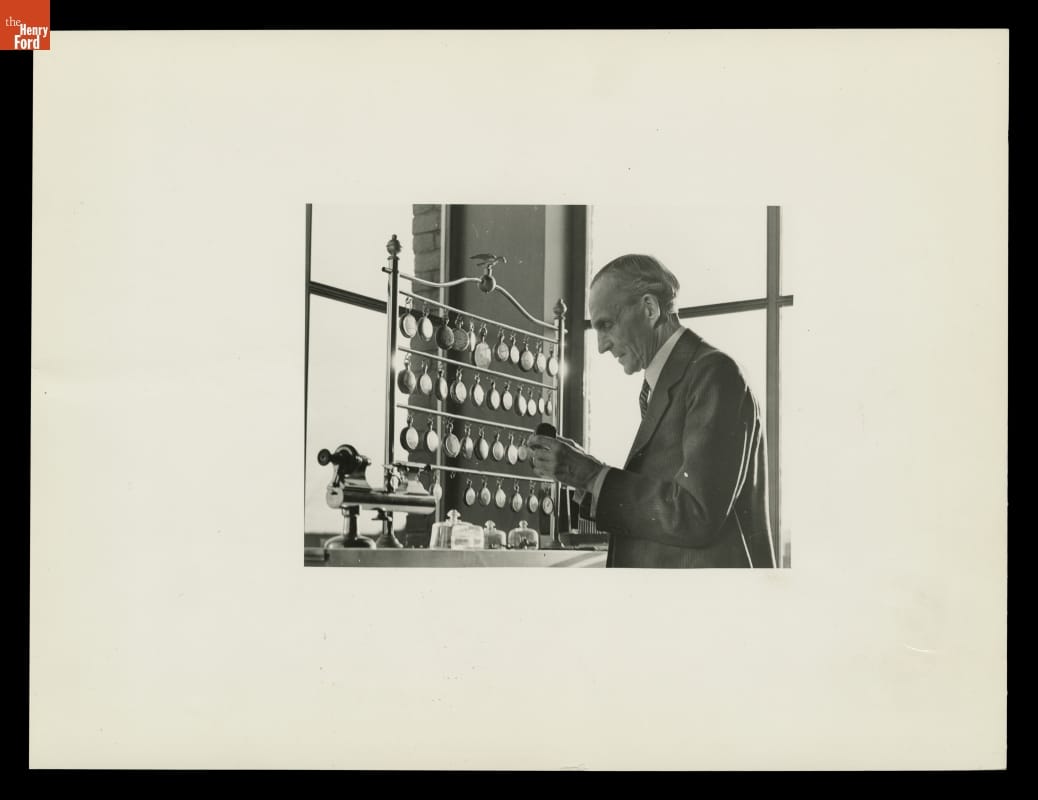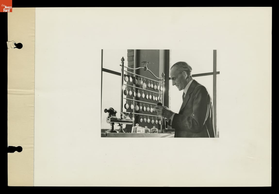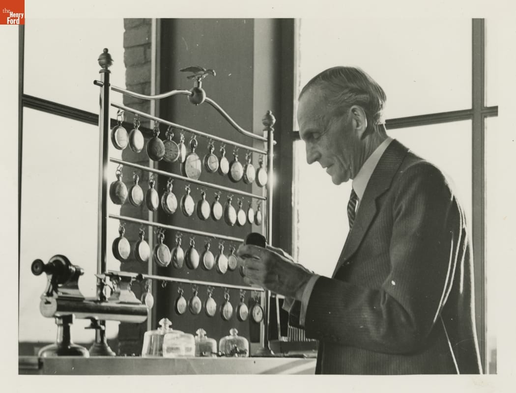 Henry Ford Examining Pocket Watches Exhibited at Magill Jewelry Store (now Cohen Millinery), Greenfield Village, 1937