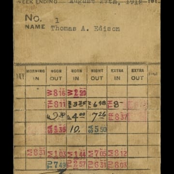 Thomas Edison Punching the Time Clock at His West Orange, New Jersey Laboratory, August 27, 1912