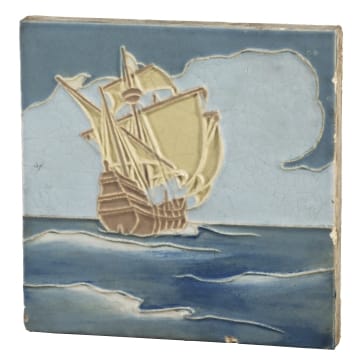 Maria Longworth Nichols (1849-1932) founded Rookwood Pottery--the pioneering art pottery company in America--in Cincinnati in 1880. She hired talented potters and decorators to create innovative ceramic wares. Trendsetting imagery and glazes made Rookwood famous and helped establish the look of art pottery. In addition to decorative vessels, Rookwood produced tiles like this for architectural installations.