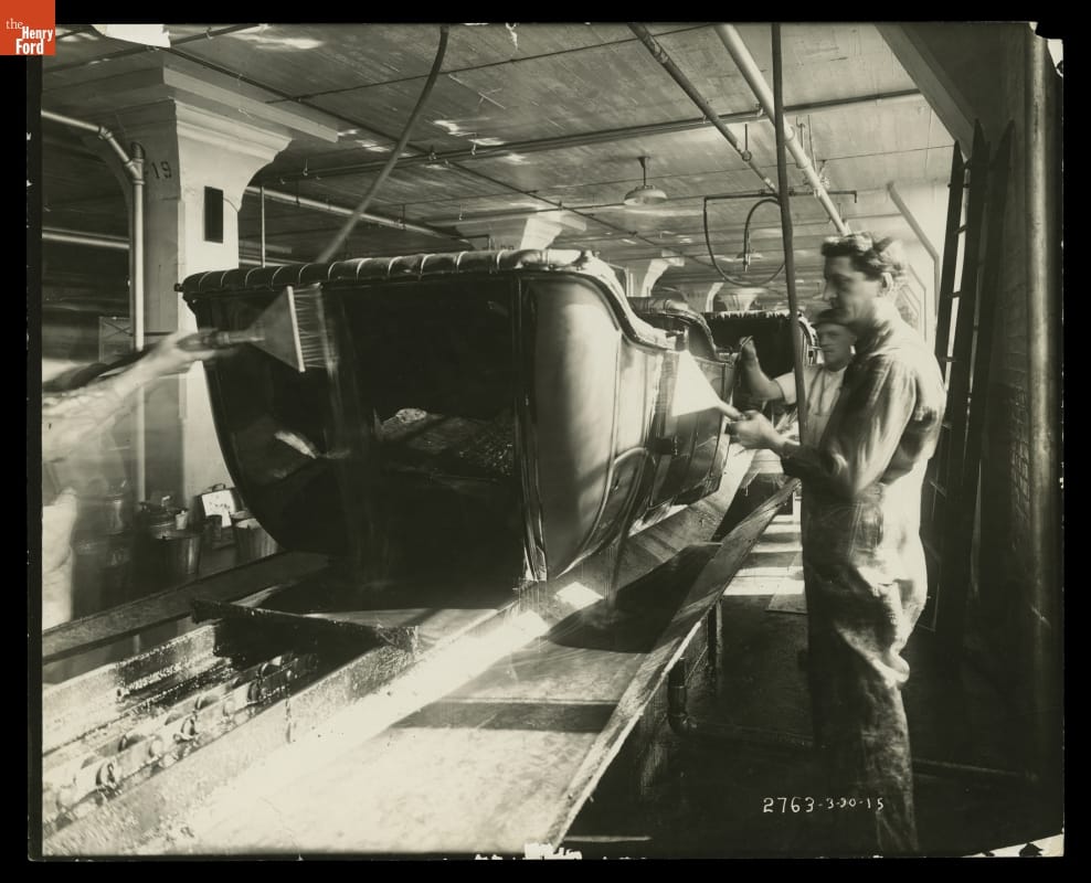 Ford Model T Car Bodies Being Painted at the Highland Park Plant, 1915