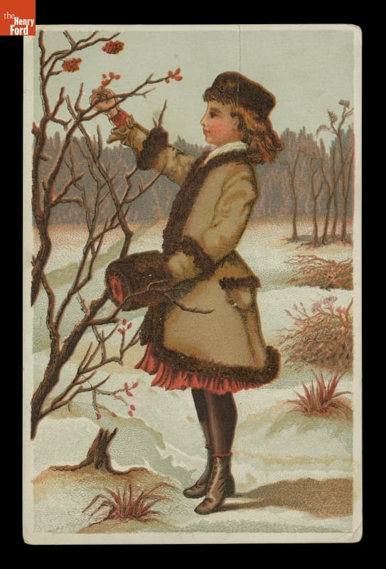 Lithograph, Girl Picking Bittersweet in Winter, circa 1885