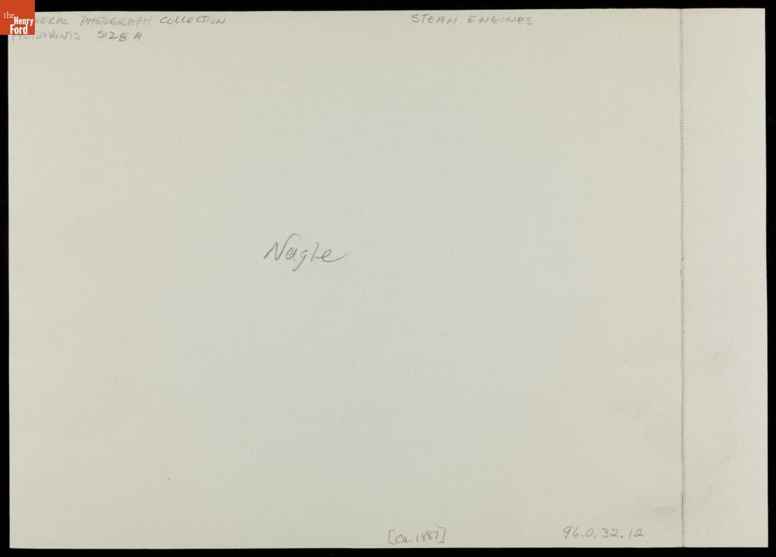 This small, portable steam engine was built by Nagle Engine and Boiler Works in Erie, Pennsylvania. It was primarily used to drive agricultural equipment and could be pulled by horse from farm to farm. An especially welcome aid to farmers during harvest time, portable steam engines powered machines such as grain threshers, sawmills, and corn shellers efficiently and affordably.