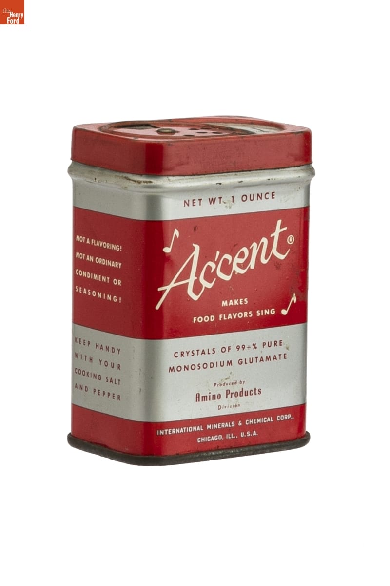 "Ac'cent: Crystals of 99+% Pure Monosodium Glutamate" Product Package, 1947-1955
