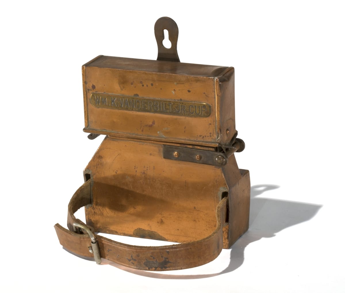 Every car in the 1904 Vanderbilt Cup race carried one of these boxes. Cars stopped at two control points during each lap. Officials recorded a car's control point entrance and exit times on papers dropped into the box. At the end of the race, "control time" was subtracted from elapsed time to determine a car's actual racing time.