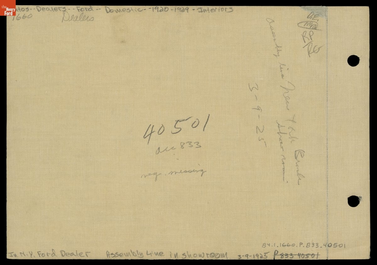 Assembly Line Display in Ford Motor Company New York City Branch, March 1925