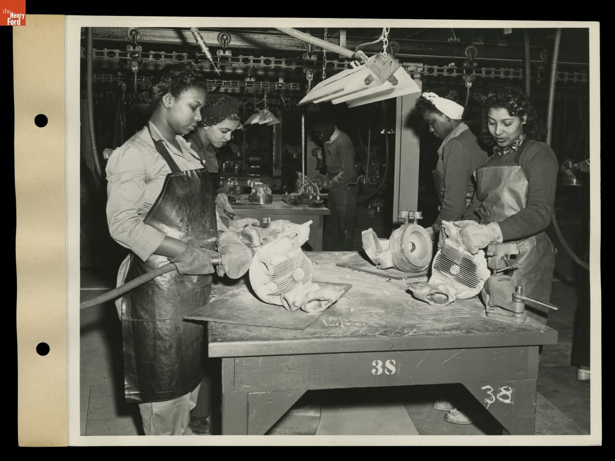 Women Making Sandcore Molds for Casting Pratt & Whitney Airplane Engine Cylinder Heads, Ford Rouge Plant, March 1943