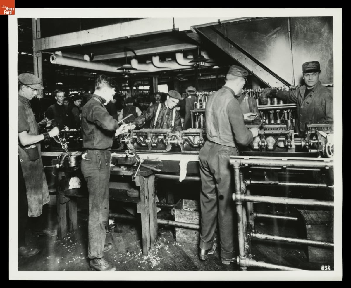 Workers Installing Pistons on Ford Model T Assembly Line at the Highland Park Plant, 1914