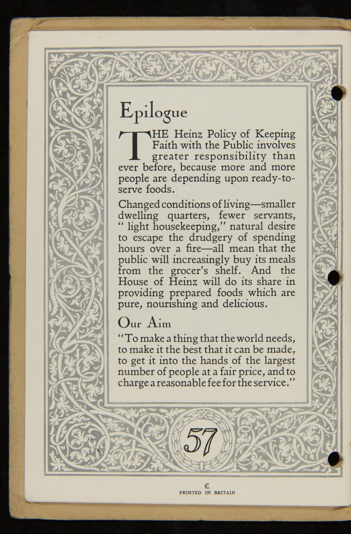 "57: The Story of the House of Heinz," London, England, circa 1932