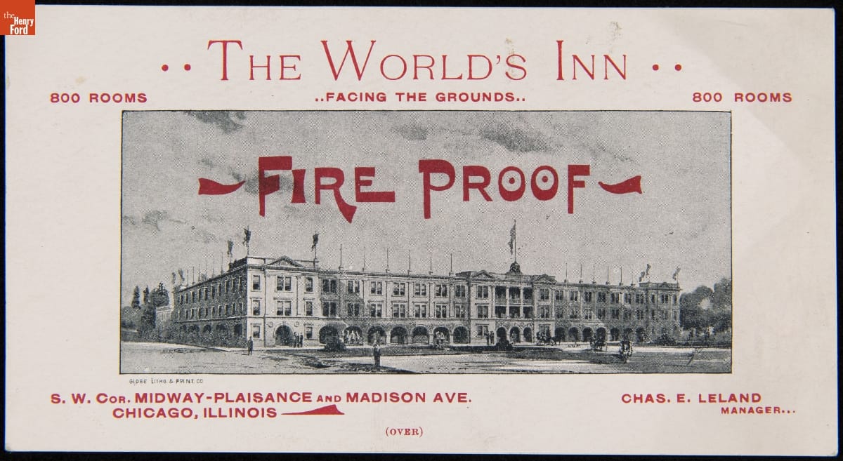 The World's Columbian Exposition in Chicago attracted more than 25 million visitors in 1893. It was a prime business opportunity for hotels like the World's Inn, located just steps away from one of the fair's entrances. The hotel's fireproof steel-beam construction was another important selling point -- particularly when memories of the 1871 Great Chicago Fire remained prevalent.