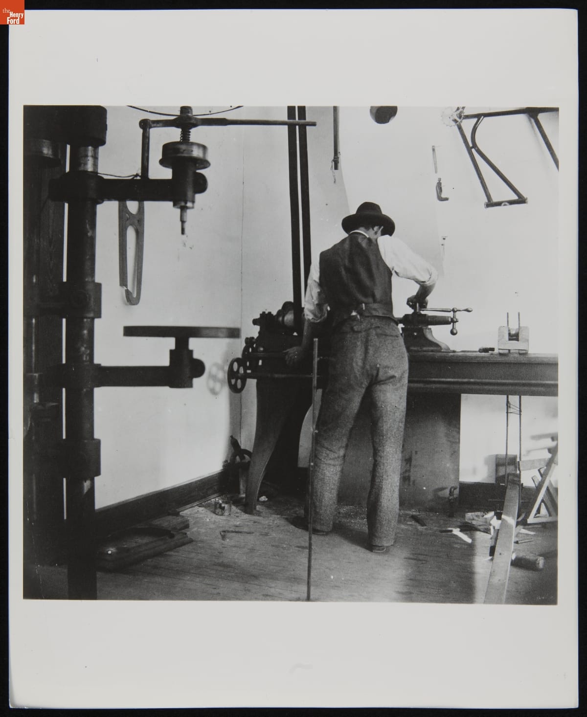 Man Working at a Lathe in the Wright Cycle Shop, Dayton, Ohio, 1897