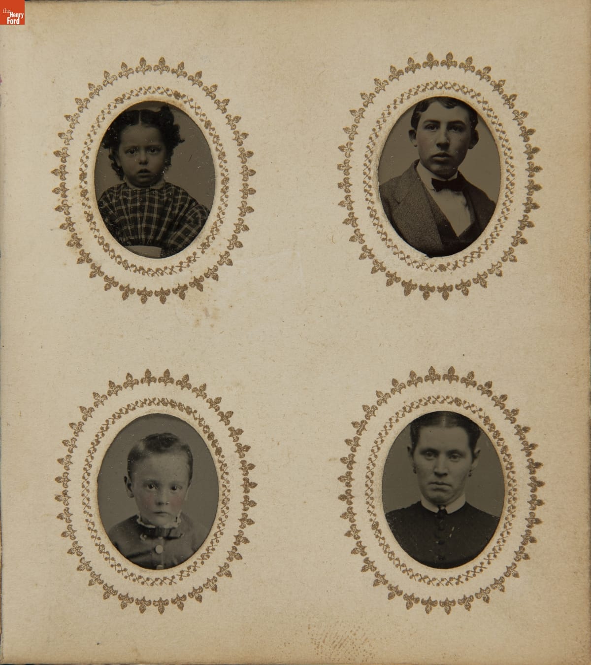 Tintypes, the inexpensive "instant photographs" of the 19th century, gave more people than ever before the chance to have a real likeness of relatives, friends, and themselves. Photograph albums--introduced in the very early 1860s--provided a way to organize, preserve, and conveniently view these images. This album holds "gem" photographs--the smallest tintype, 3/4 to 1 inch in size.
