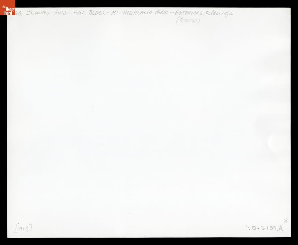 The Highland Park Plant, shown here in 1913, is where Henry Ford would go on to perfect the assembly line process and institute the Five Dollar Day. In this photograph, the plant's exterior is teeming with some of its approximately 50,000 workers, while parked cars and a streetcar line show how these workers got to and from work.