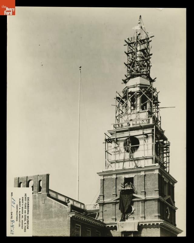Henry Ford commissioned architect Robert O. Derrick to design the museum building for his Edison Institute. By late October 1929 the front portion of the building, inspired by Philadelphia's Independence Hall, was sufficiently completed to host the institute's Light's Golden Jubilee dedication banquet. Construction wasn't fully finished until the mid-1930s.