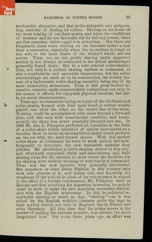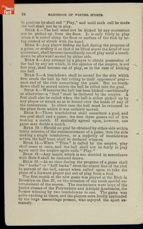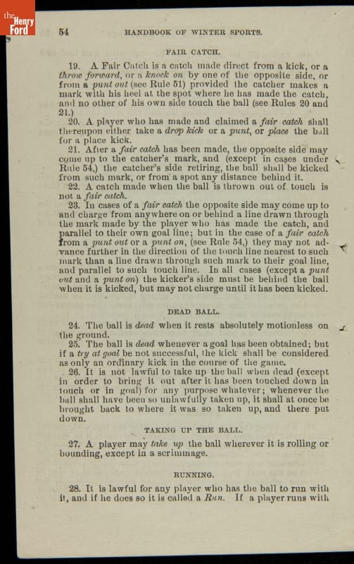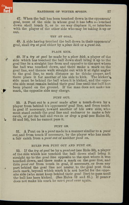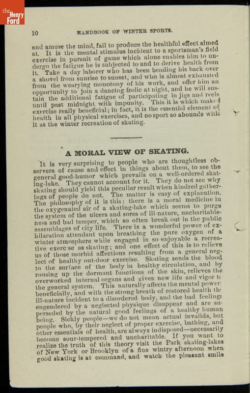 Late-nineteenth-century sportswriter Henry Chadwick was an advocate for exercise and healthy activities. He is best known for his promotion of baseball, but encouraged Americans to participate in all types of sports. In 1879, he authored Hand Book of Winter Sports. The book instructs readers on how to play and enjoy several seasonal activities, including skating, curling, ice boating and American football.