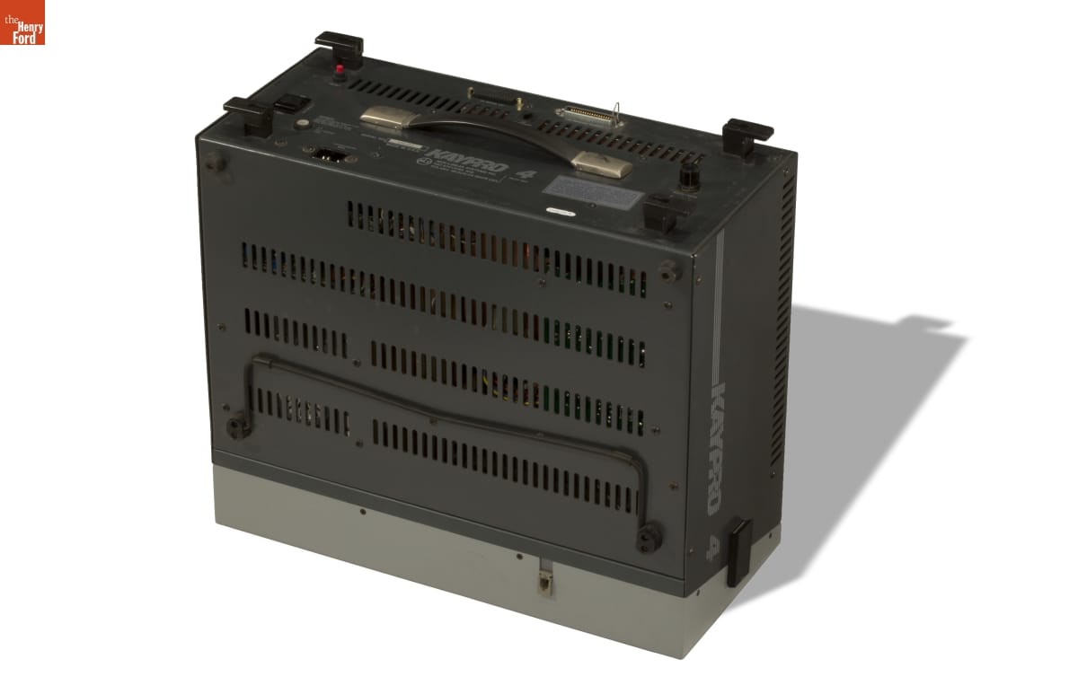 proper left side: Kaypro 4 rear (partial): Kaypro Non-Linear Systems, Inc. 522 Stevens Ave. Solana Beach, CA 92075 USA Serial No. 100383 Made in U.S.A.