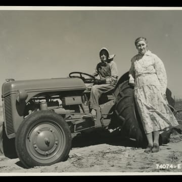 A universal linkage between tractors and implements was a challenge for farm equipment manufacturers. Ireland's Harry Ferguson spent 18 years developing the hydraulic three-point hitch, called the Ferguson System. Easy to use, lightweight and elegantly simple, it remains the standard implement hitch to the present. This advertisement demonstrates the ease of the system with farmers from age 10 to 90.