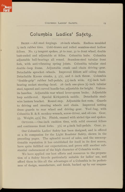 Catalog for Columbia Bicycles, Pope Manufacturing Company, 1891