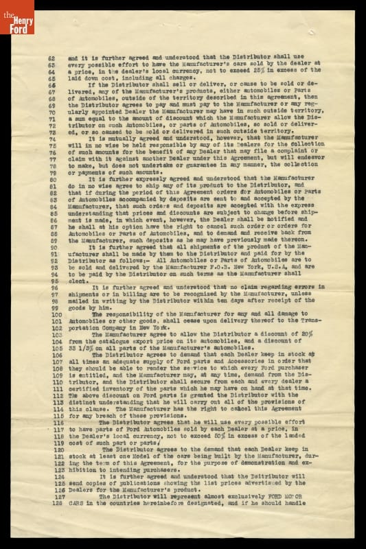 Dealer Agreement Between Ford Motor Company and Markt & Hammacher Company, 1913