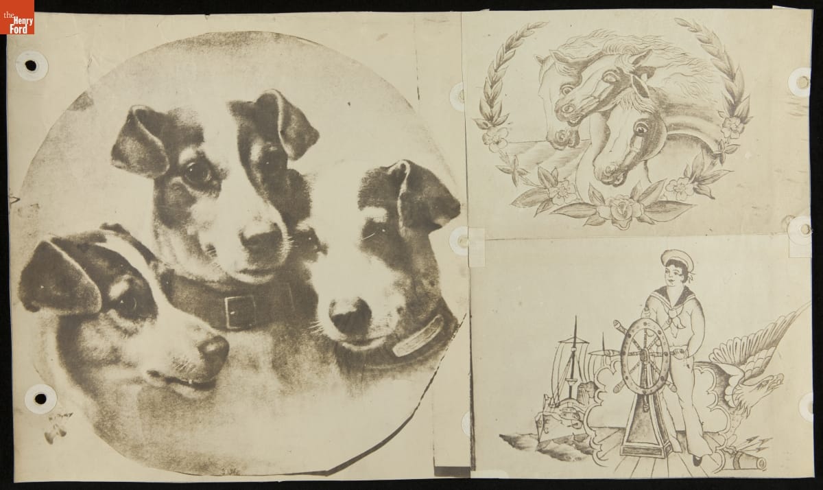 Tattoos communicate stories. Their content ranges from deeply personal and traditional--to regrettable and frivolous. In the early 1900s, "Professor" Waters apprenticed as a tattoo artist in carnivals and New York's Bowery District. He ran a successful supply shop in Detroit (1918-1939), patenting the standard "two-coil" tattoo machine in 1929. Designs from his flash sheets continue to inspire tattooists today.