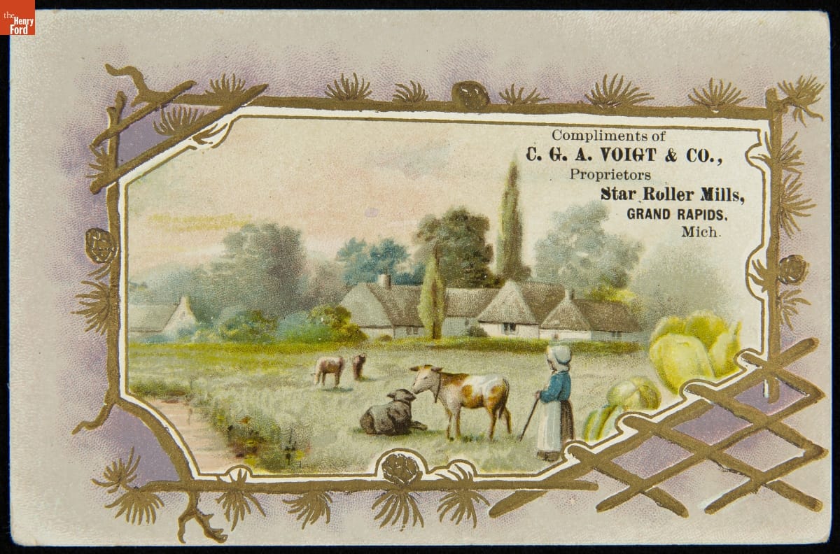 In the last third of the nineteenth century, an unprecedented variety of consumer goods and services flooded the American market. Advertisers, armed with new methods of color printing, bombarded potential customers with trade cards. Americans enjoyed and often saved the vibrant little advertisements found in product packages or distributed by local merchants. Many survive as historical records of commercialism in the United States.
