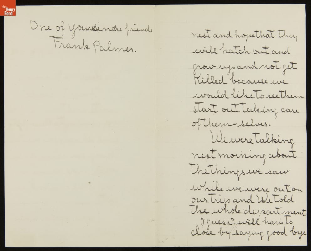 Letter to John Burroughs from Frank Palmer, a Student Thanking Him for a Nature Walk, May 16, 1901