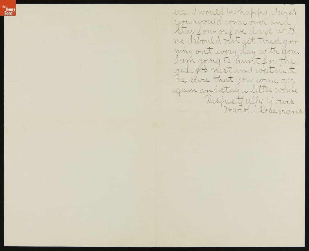 Letter to John Burroughs from Harold Rosecrans, a Student Thanking Him for a Nature Walk, May 17, 1901