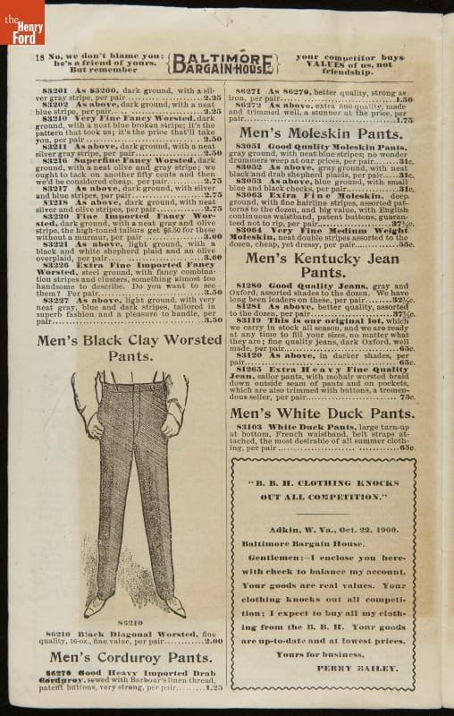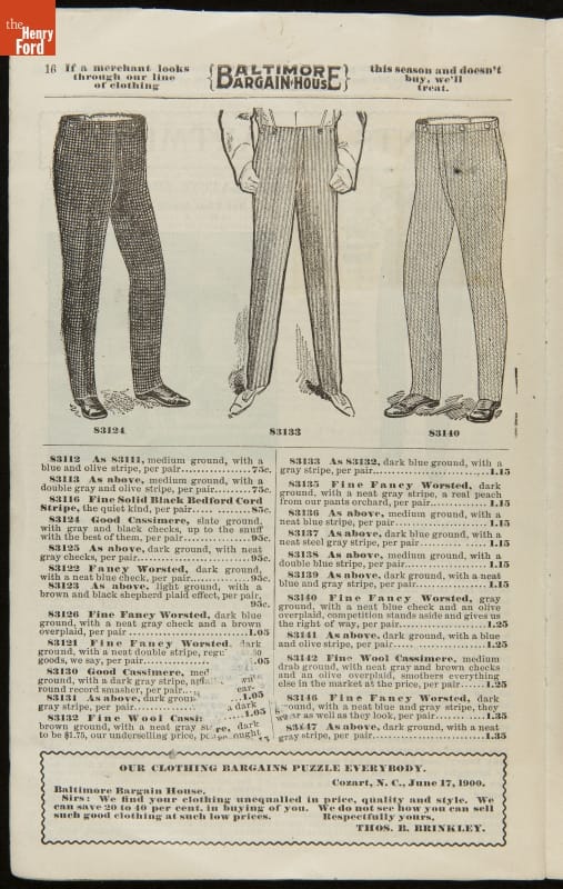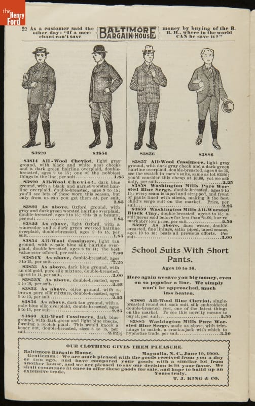 Baltimore Bargain House Clothing Sales Catalog, Spring and Summer, 1901