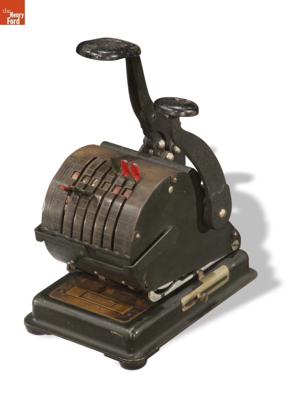 top: Lightning Checkwriter Reg. U.S. Pat. Off. F E Trade Mark front: 1022113