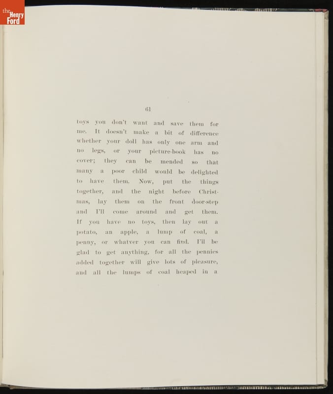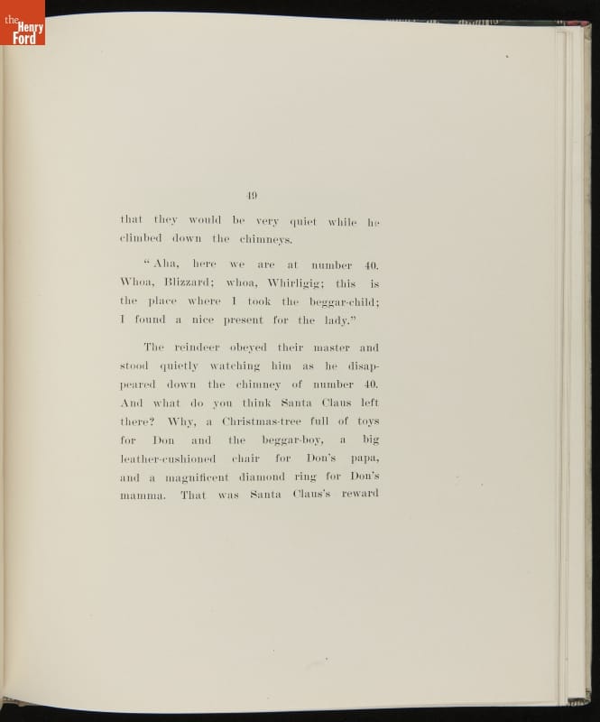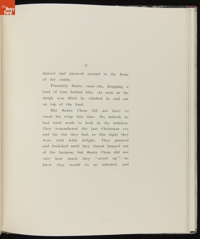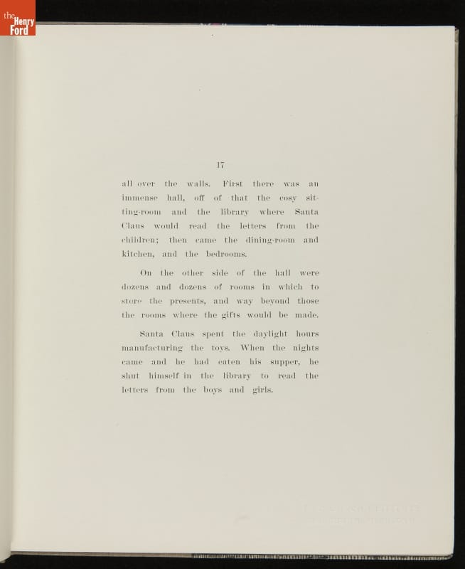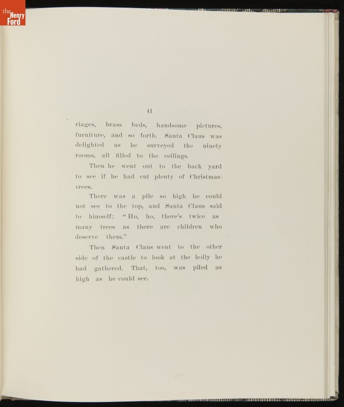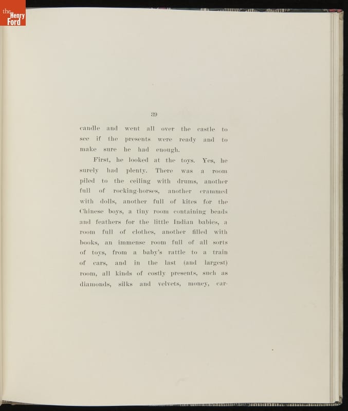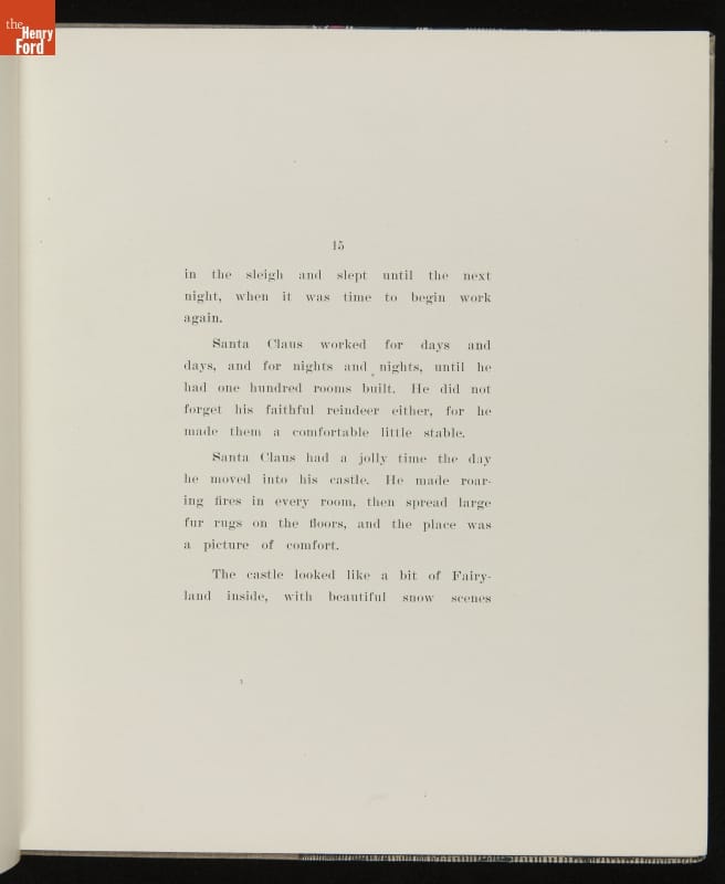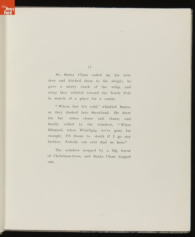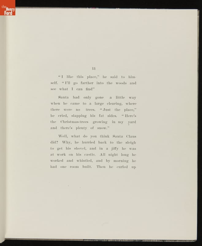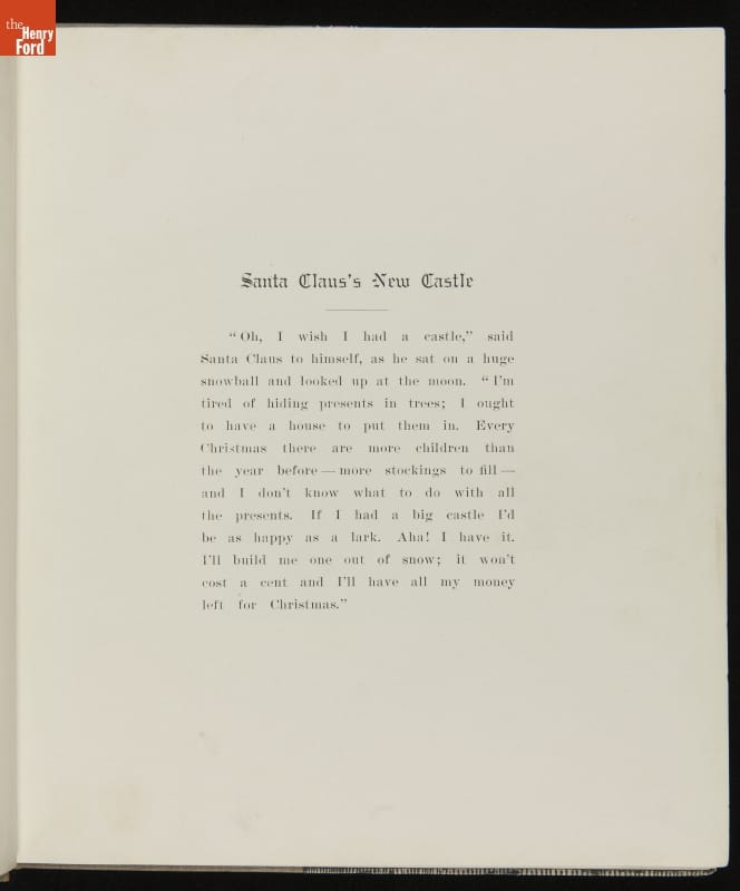 In Santa Claus's New Castle, Santa Claus needed a place to store more presents and decided to build a snow castle with lots of rooms. The book recounts how Santa built his castle and how, after he finished it, he visited New York City and helped a poor child. In the end, Santa asked for children's help to provide gifts to the less fortunate.