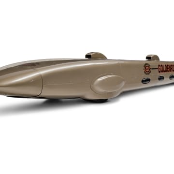 Brothers Bob (left) and Bill Summers set a wheel-driven land speed record of 409.277 miles per hour with Goldenrod, their streamlined race car, in November 1965. The car was powered by four lightly modified Chrysler "Hemi" V-8 engines that produced 600 horsepower each. Goldenrod's impressive record stood for 26 years.