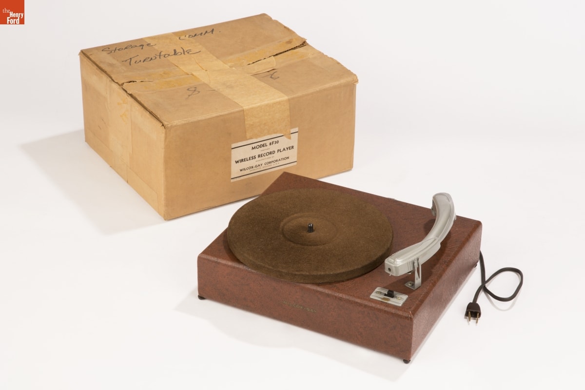product package label: Model 8F30 Wireless Record Player Manufactured by Wilcox-Gay Corporation Charlotte, Michigan U.S.A. phonograph: Wilcox-Gay