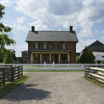 In 1983, the Firestone family donated their circa 1828 Columbiana County, Ohio, farmstead to Greenfield Village. The farm had been the boyhood home of Harvey Firestone, who later became a tire and rubber magnate and friend of Henry Ford. On June 29, 1985, descendants of Henry Ford and Harvey Firestone along with former U.S. President Gerald Ford helped dedicate the newly installed farm.