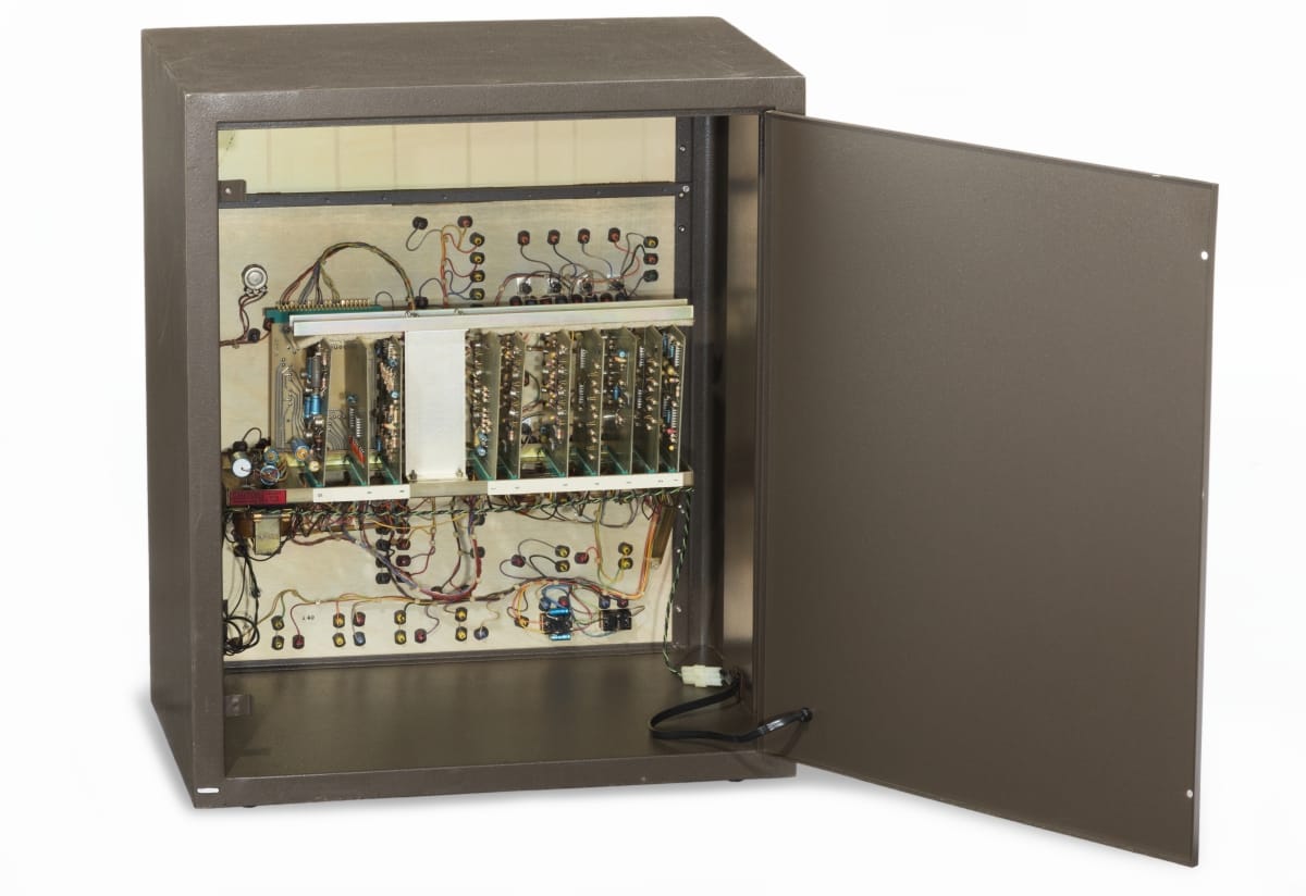 This educational computer was used to introduce students to the basics of computer operation and logic programming. It is a direct response to the rapid growth of the 1960s computing industry, and the need to train specialized workers. This DIGIAC was used in a Toledo, Ohio, high school. A section of its "core memory" is visible through a small window.