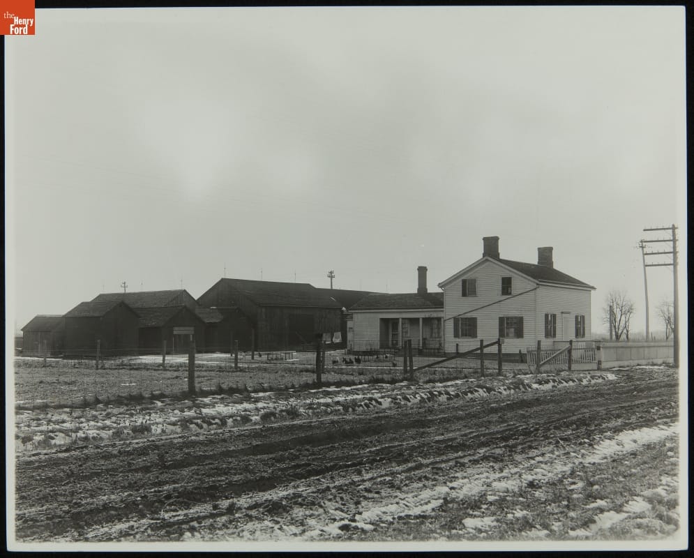 Henry Ford began restoration of his Dearborn, Michigan, birthplace in 1919. He repaired or replaced the farm buildings and filled the small, white clapboard house with original or similar furnishings he remembered from his boyhood. He dedicated the restoration to the memory of his beloved mother, Mary Litogot Ford, who died in 1876. In 1944, the house and outbuildings were moved to Greenfield Village.