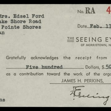 Letter of Thanks from W. H. Ebeling, The Seeing Eye Guide Dog School, to Edsel and Eleanor Ford, February 18, 1939