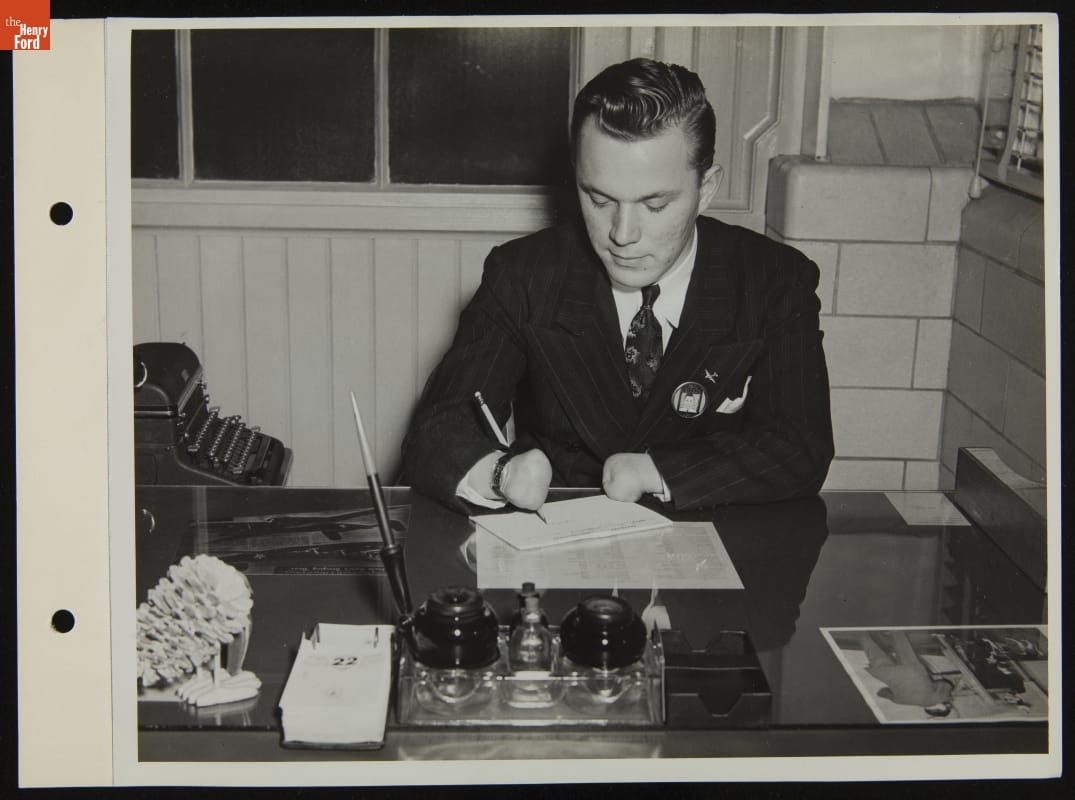 Ford Motor Company Employee with Disabled Hands Working at Desk, October 1942