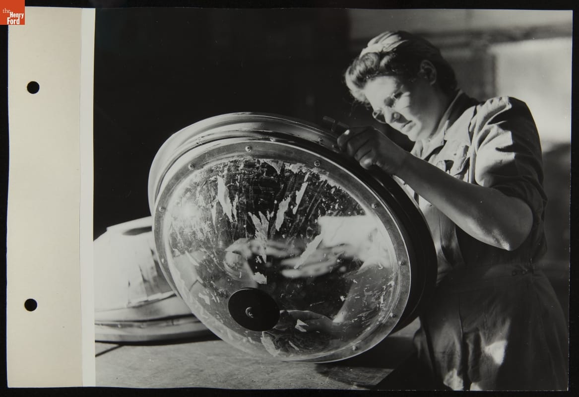 Women represented approximately one-third of the workers at Ford Motor Company's Willow Run plant, where they did everything from clerical work in the offices to riveting and welding on the assembly line. During World War II, women joined the workforce in record numbers to take on essential jobs traditionally held by men who had joined the armed forces.
