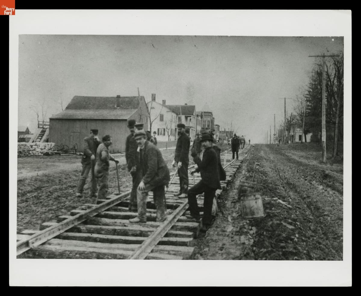 Workers Laying Interurban Streetcar Tracks, Dearborn, Michigan, circa 1910