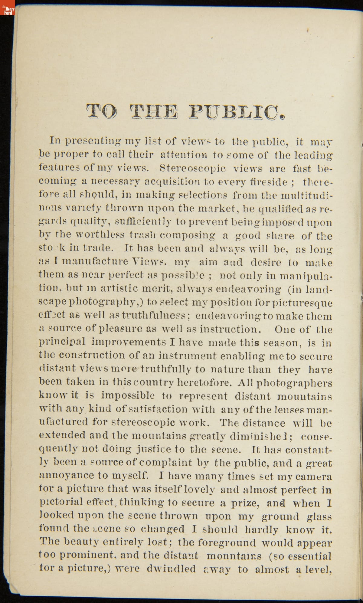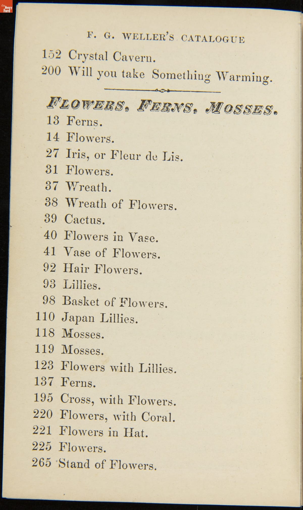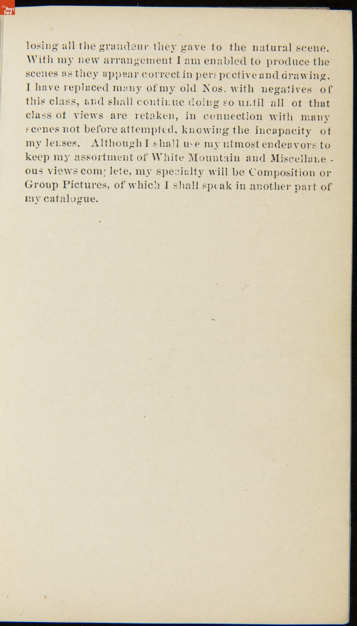 Catalogue of Stereoscopic Views by F. G. Weller, Littleton, N. H., 1870-1875 / back cover