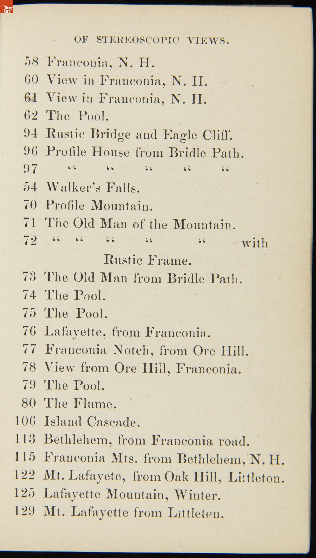 Catalogue of Stereoscopic Views by F. G. Weller, Littleton, N. H., 1870-1875 / page23
