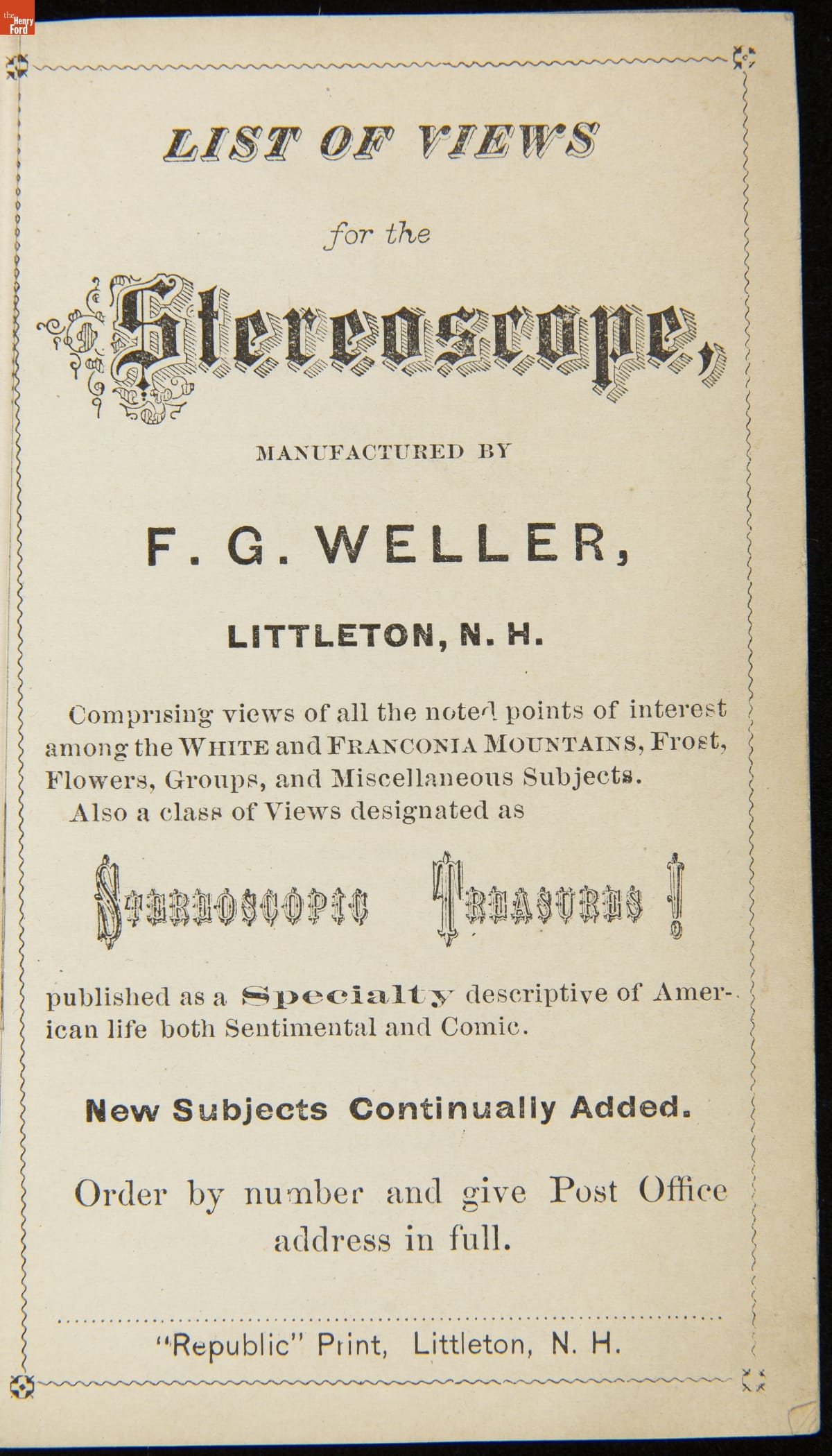 Catalogue of Stereoscopic Views by F. G. Weller, Littleton, N. H., 1870-1875