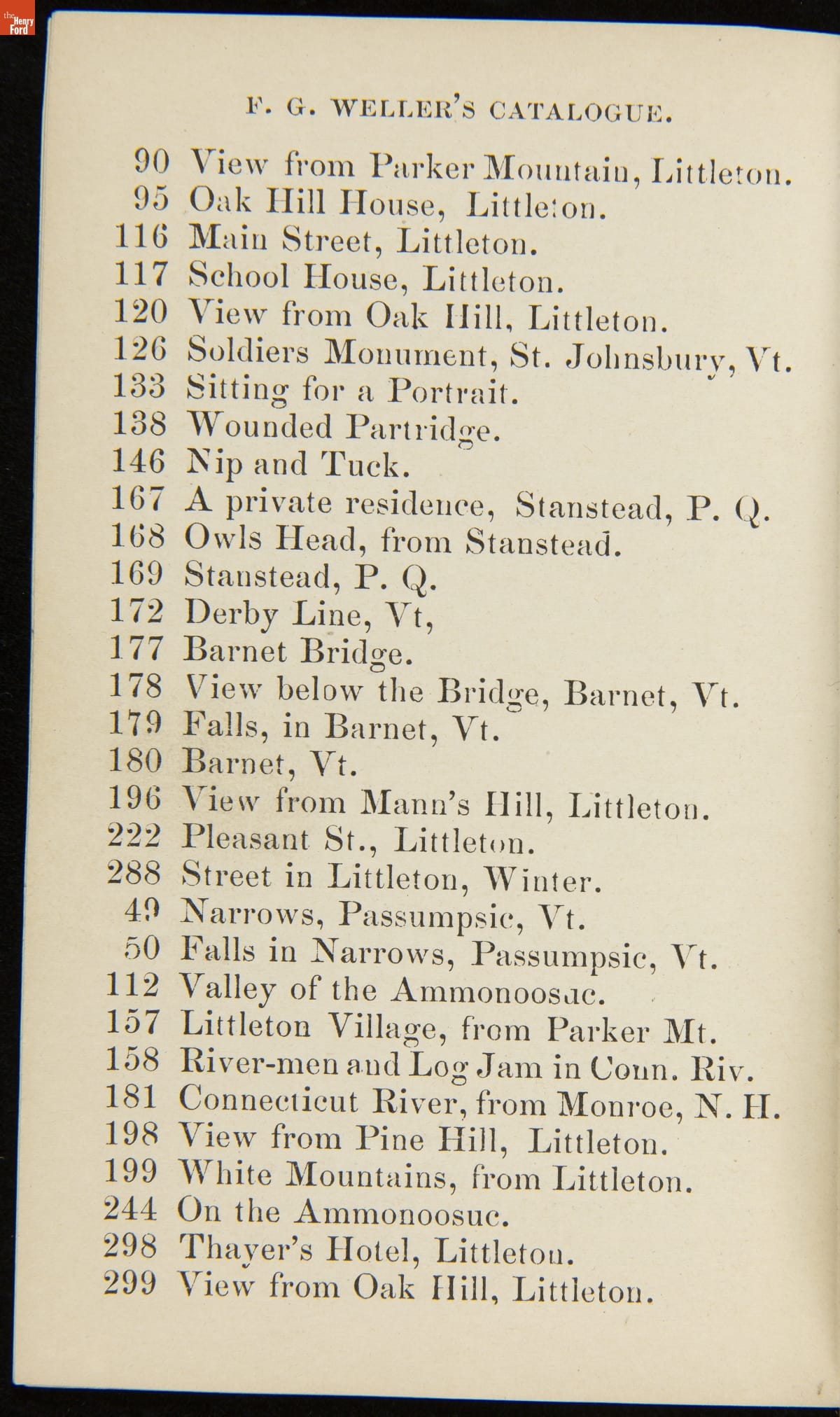 Catalogue of Stereoscopic Views by F. G. Weller, Littleton, N. H., 1870-1875 / page18