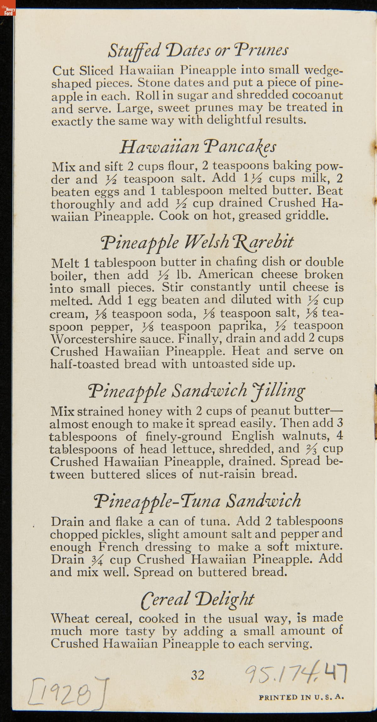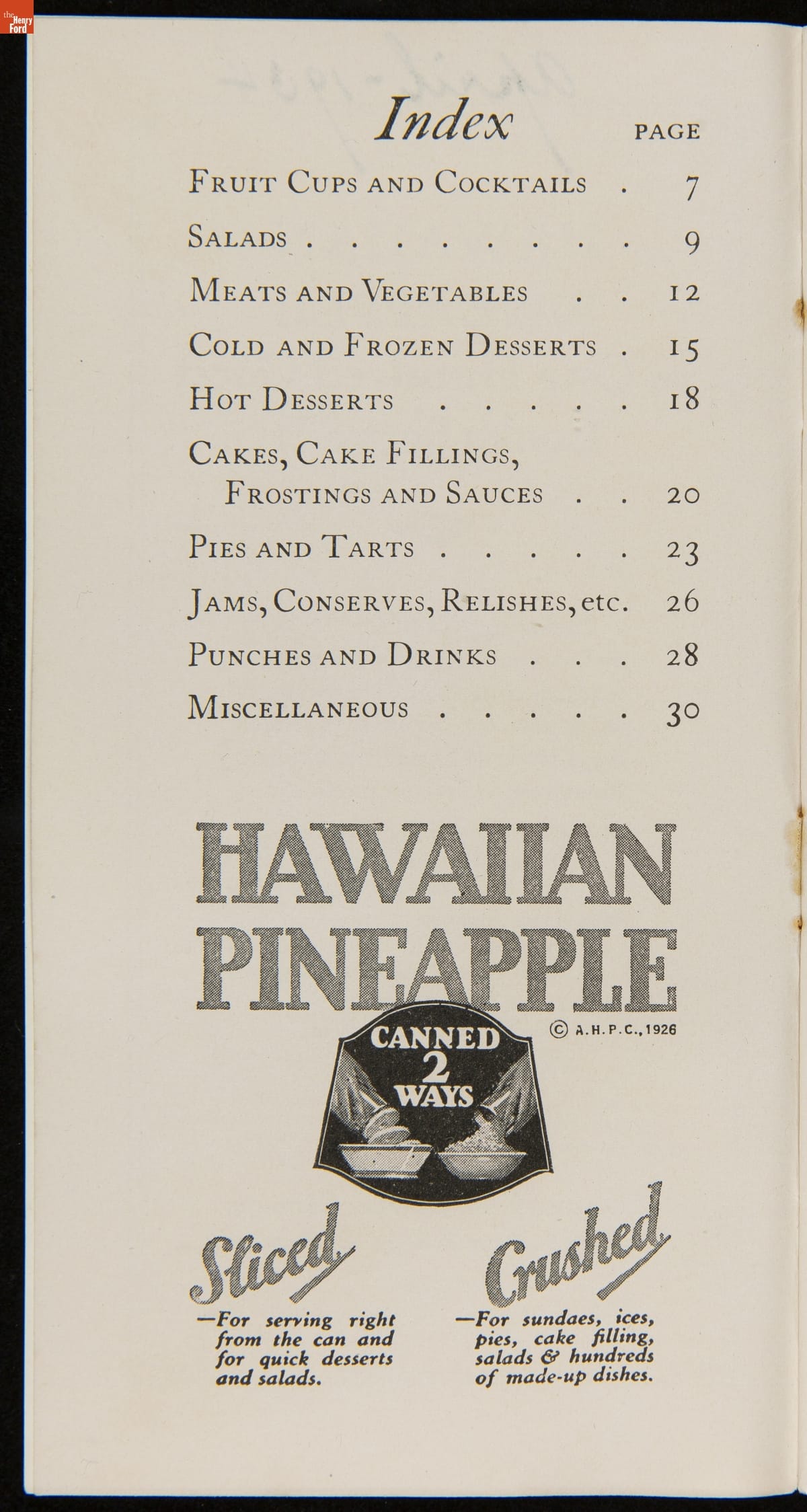 Recipe Booklet, "Hawaiian Pineapple, as 100 Good Cooks Serve It," 1928