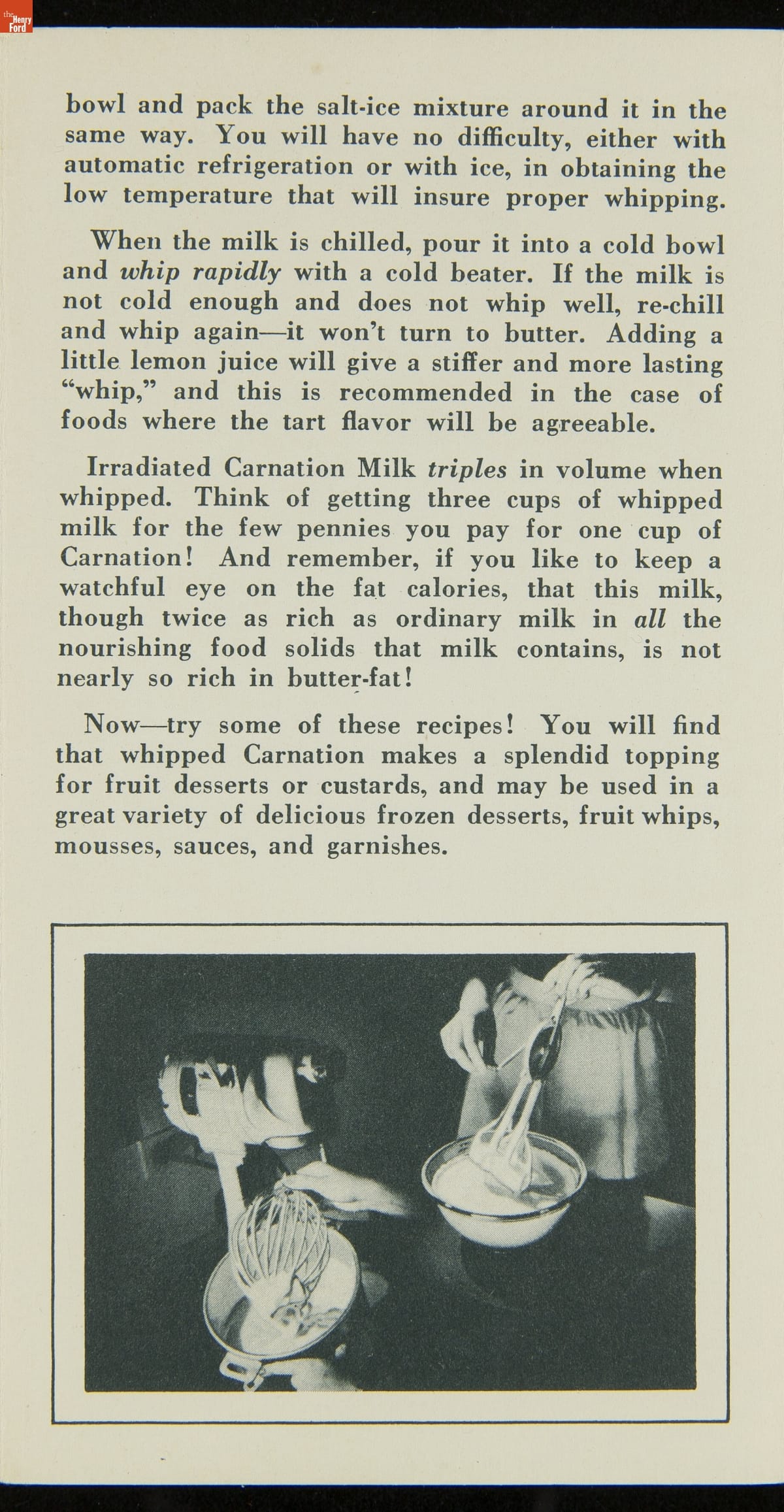 Recipe Booklet, "Carnation Company, It Whips! Irradiated Carnation Milk," circa 1935