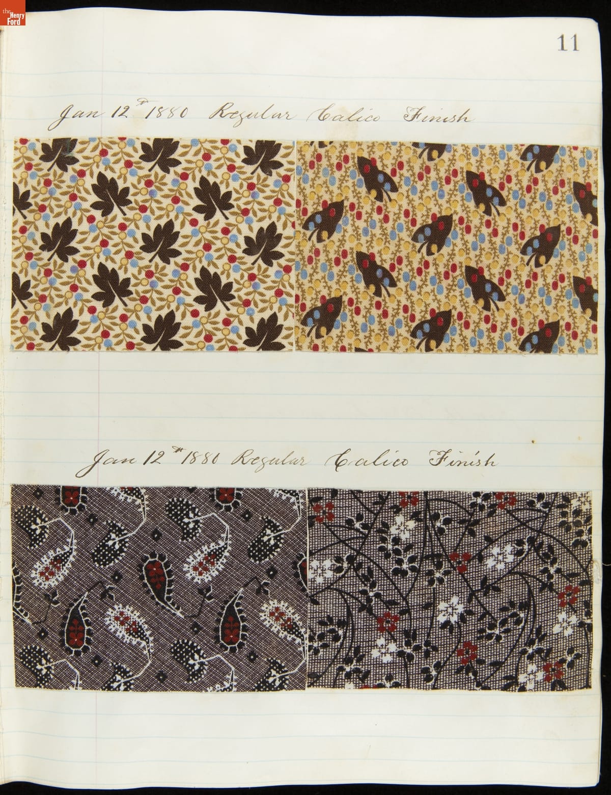 During the 19th century, New England textile mills manufactured billions of yards of fabric for the mass market, producing roller-printed cottons using increasingly complex mechanized processes. Colorful cotton prints, like those made by Cocheco Manufacturing Company, became affordable to almost everyone.