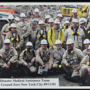 Gerald "Gerry" Gomes had been involved with the National Disaster Medical System (NDMS) since about 1990, when the United States was attacked by terrorists on September 11, 2001. As part of NDMS's Disaster Medical Assistance Team, Gerry was deployed to New York City's World Trade Center -- "Ground Zero" -- to aid victims and first responders. He wore this hard hat during his work there.